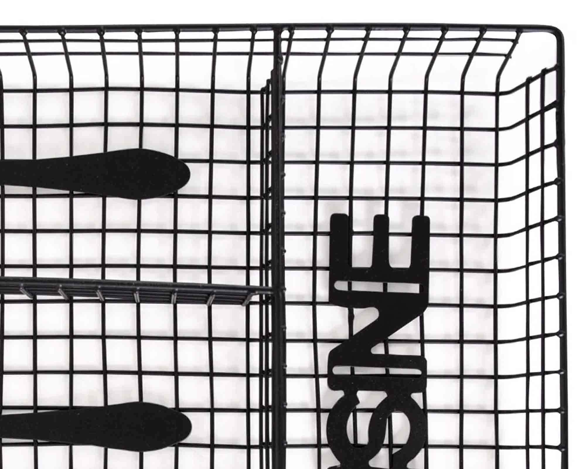 Realizzato in metallo resistente, presenta una struttura solida e ben rifinita, ideale per contenere forchette, coltelli, cucchiai e altri accessori da cucina. Il colore nero opaco dona un tocco moderno e minimalista, perfetto per qualsiasi stile di arredamento, dalla cucina industriale a quella più classica.