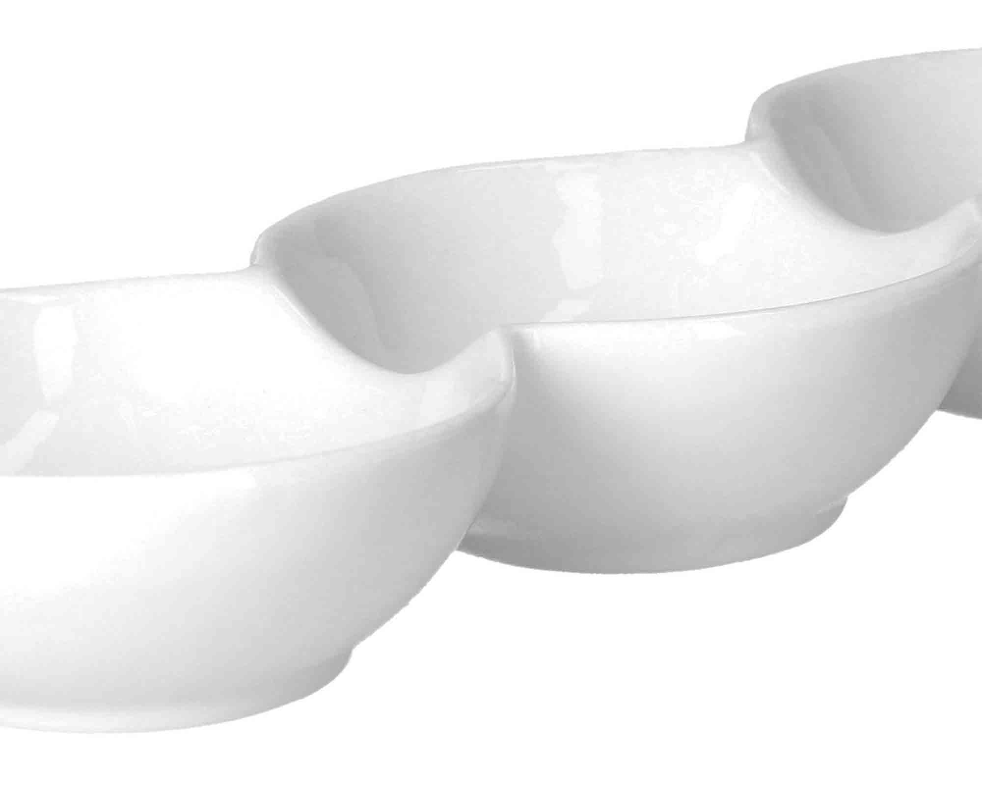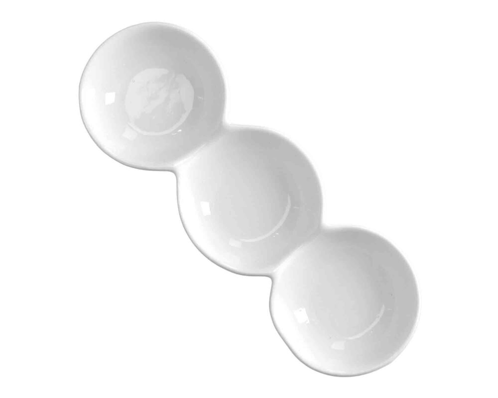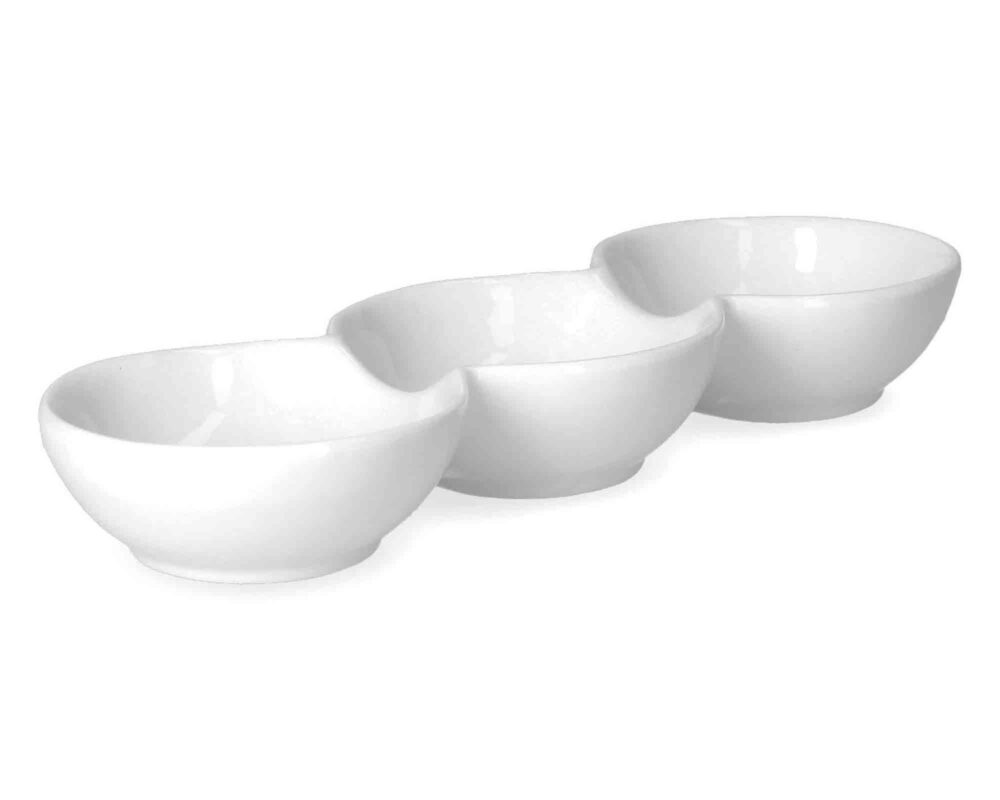 Compatta e raffinata, questa antipastiera in porcellana è la scelta perfetta per servire salse, stuzzichini, olive o finger food con eleganza.
