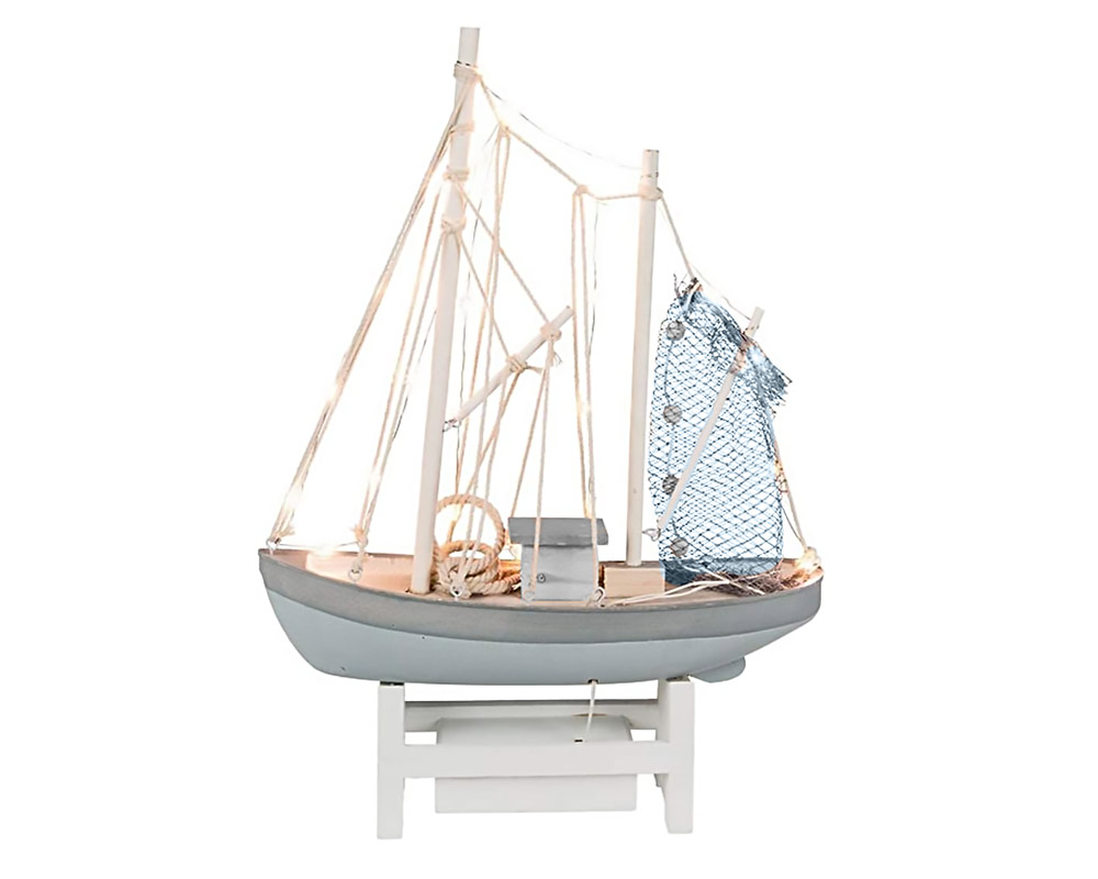 Questa piccola Barca a Vela Decorativa, è un originale accessorio per arredare la tua casa in stile atlantico. La barca è realizzata in legno reso antichizzato con un effetto decapé con corde e reti con piccoli decori marittimi. Simpatico accessorio per rendere speciale la tua casa nella stagione estiva, o per arredarne un’abitazione riservata per le vacanze al mare.