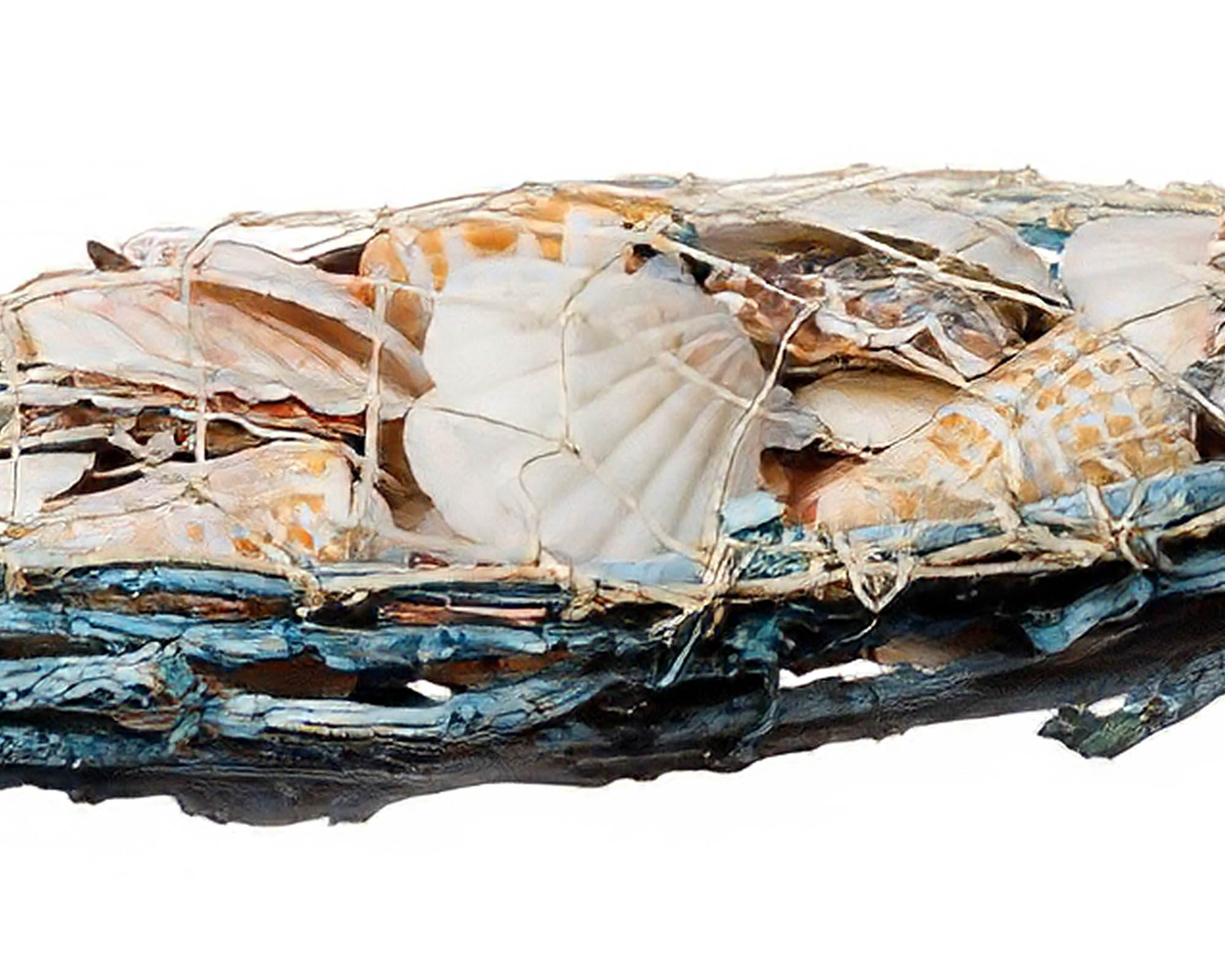 Le conchiglie sono disposte in modo armonioso su una base solida, creando un contrasto accattivante tra la loro delicatezza e la stabilità della struttura sottostante. Questa composizione decorativa cattura l’essenza del mare e porta con sé un senso di tranquillità e serenità.