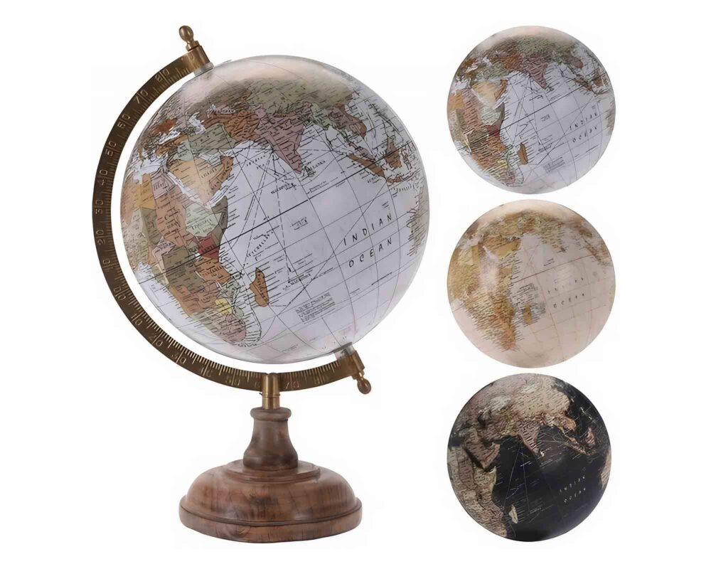 Mappamondo Elegante e Sobrio Assortito D20x33cm in Legno e Metallo