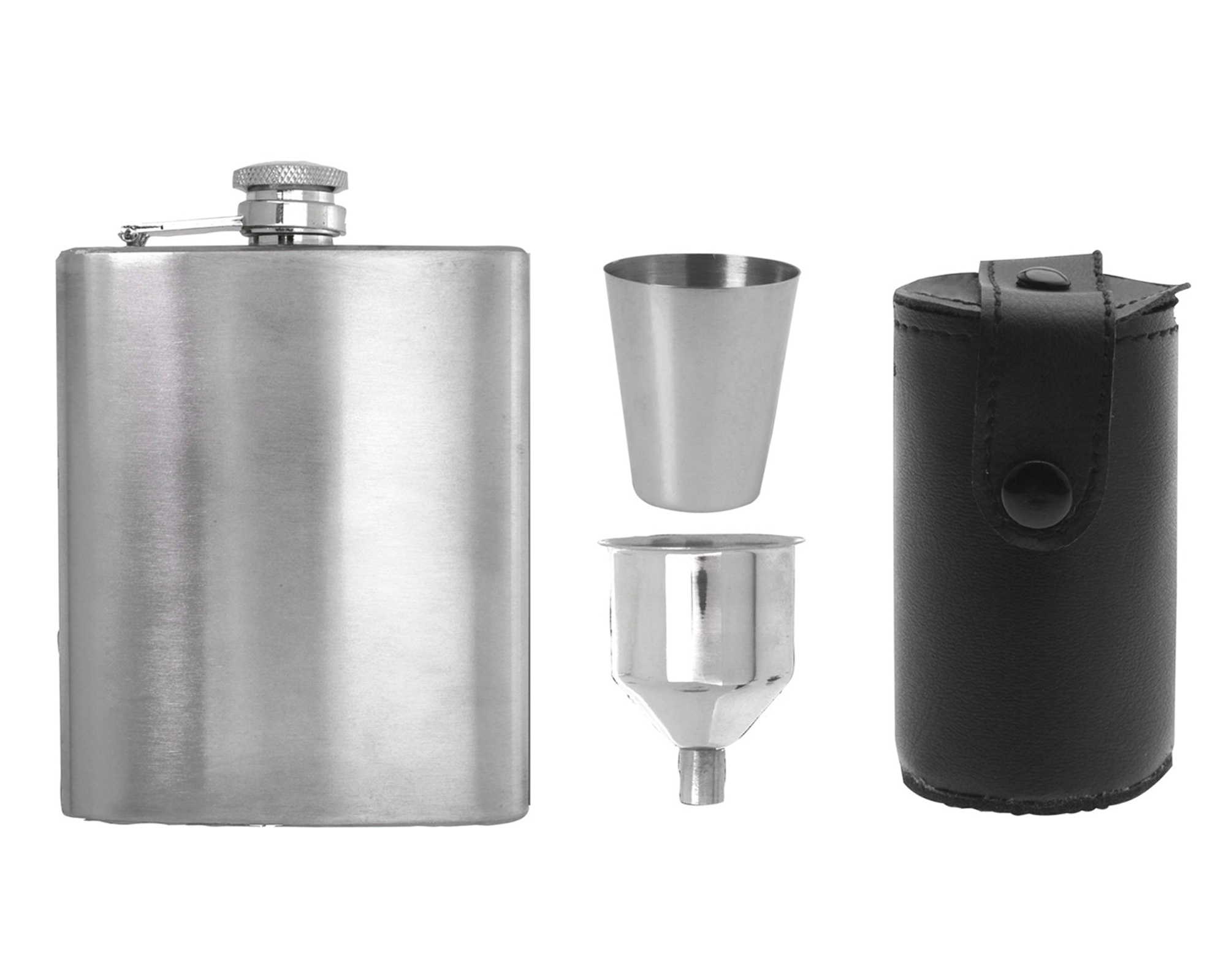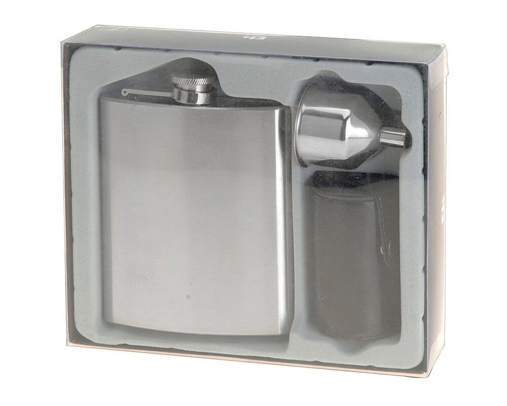 Fiaschetta in acciaio inossidabile spazzolato opaco per il perfetto isolamento delle bevande (alcoliche). Con tappo chiudibile e accessori. Perfetto anche per scopi estetici
