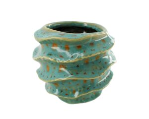 Le onde sinuose sulla superficie del cachepot creano un effetto visivo accattivante, dando vita a un pezzo che si adatta perfettamente a una varietà di ambienti, dallo stile moderno a quello più classico. La tonalità vivace dell’acqua blu aggiunge una nota di freschezza e vitalità, contribuendo a creare un’atmosfera accogliente e vivace nella tua casa o in ufficio.