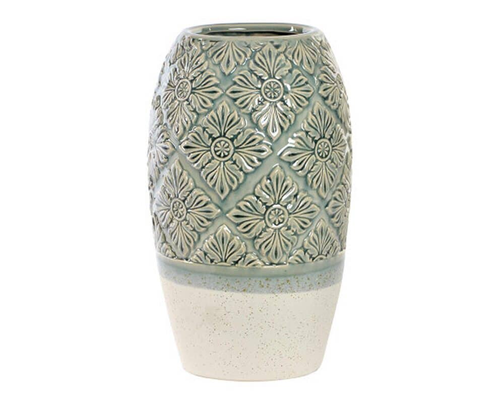 Vaso con Decorazione Floreale Verde D16,5×27,5h in Porcellana
