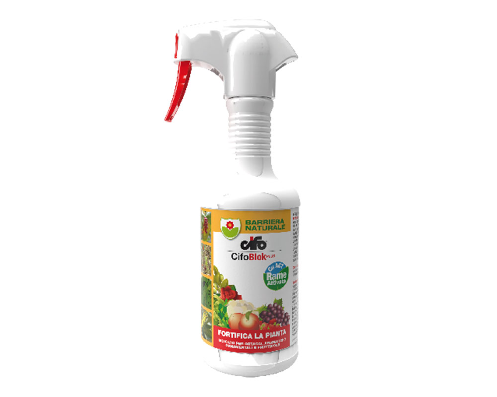 Cifoblok Plus è un formulato pronto all’uso di nuova concezione, a base di un mix di estratti vegetali di Echinacea, Aloe e Tormentilla coadiuvati dalla molecola CuACT, rame attivato da un complesso di amminoacidi vegetali. Grazie alla sua formulazione esclusiva, Cifoblok Plus è in grado di attivare le barriere fisiologiche della pianta, migliorandone il vigore e fortificando le pareti cellulari e i tessuti, favorendo quindi una crescita sana e migliorando la qualità finale delle produzioni. Il prodotto è particolarmente indicato per ortaggi, frutticole e piante ornamentali, durante tutto il ciclo vegetativo, per assicurare raccolti abbondanti e di alta qualità.