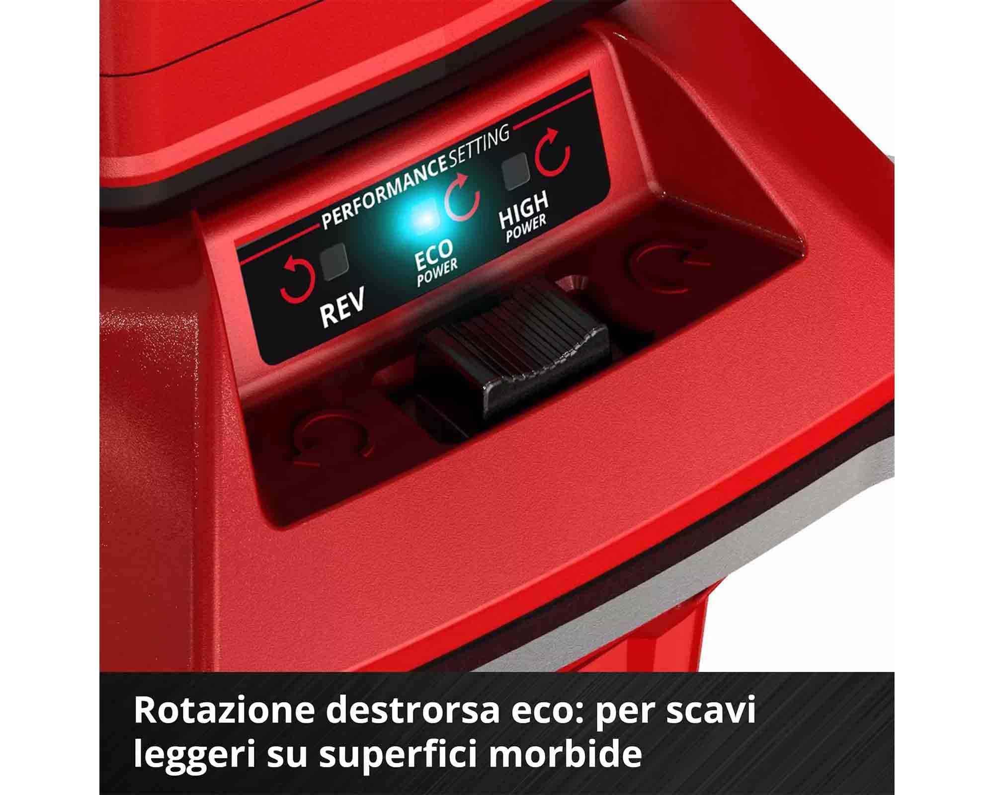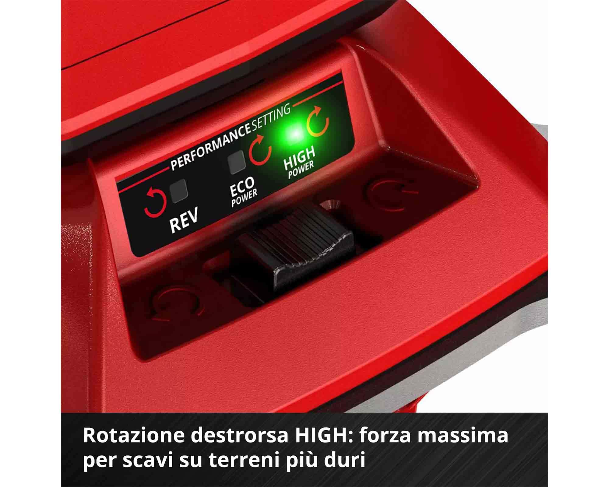 L’apparecchio a batteria viene fornito con una trivella lunga 80 cm e dal diametro di 15 cm. Fa parte della famiglia Power X-Change di Einhell, pertanto le batterie agli ioni di litio della serie sono compatibili con tutti gli apparecchi Power X-Change. La batteria e il caricabatteria non sono inclusi nella fornitura e vanno acquistati separatamente. Per il funzionamento è necessaria una batteria PXC da 18 V.
