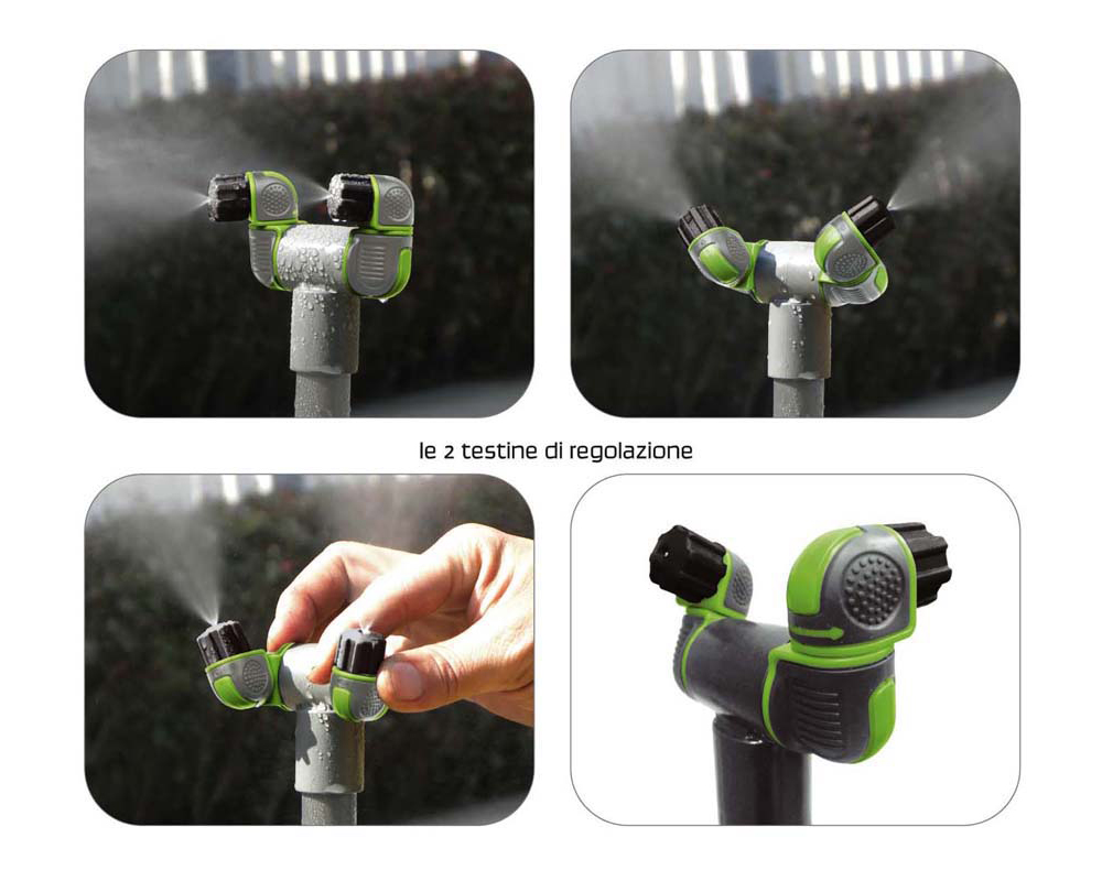 Tubo rigido portatile a torre, con due testine regolabili e orientabili. Ideale per portare refrigerio nei caldi giorni estivi, dove si vuole, in giardino, sui balconi, terrazzi, zona barbeque, ecc. Facile da utilizzare, basta collegarlo al tubo dell`acqua.