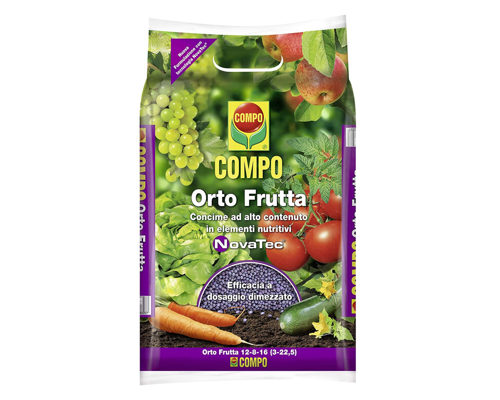 Compo orto frutta concime cenpk con microelementi tecnologia novatec : per rallentare il processo di trasformazione dell‘azoto da ammoniacale a nitrico, aumentando l‘efficienza del prodotto. Dose media: 30-40 g / m2 g4