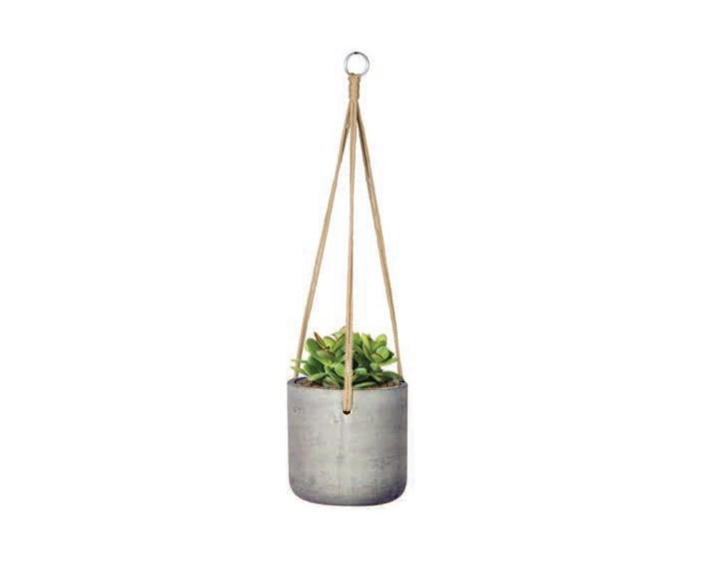 Vaso da Appendere Forma Cilindro Grigio 11h in Cemento e Corda