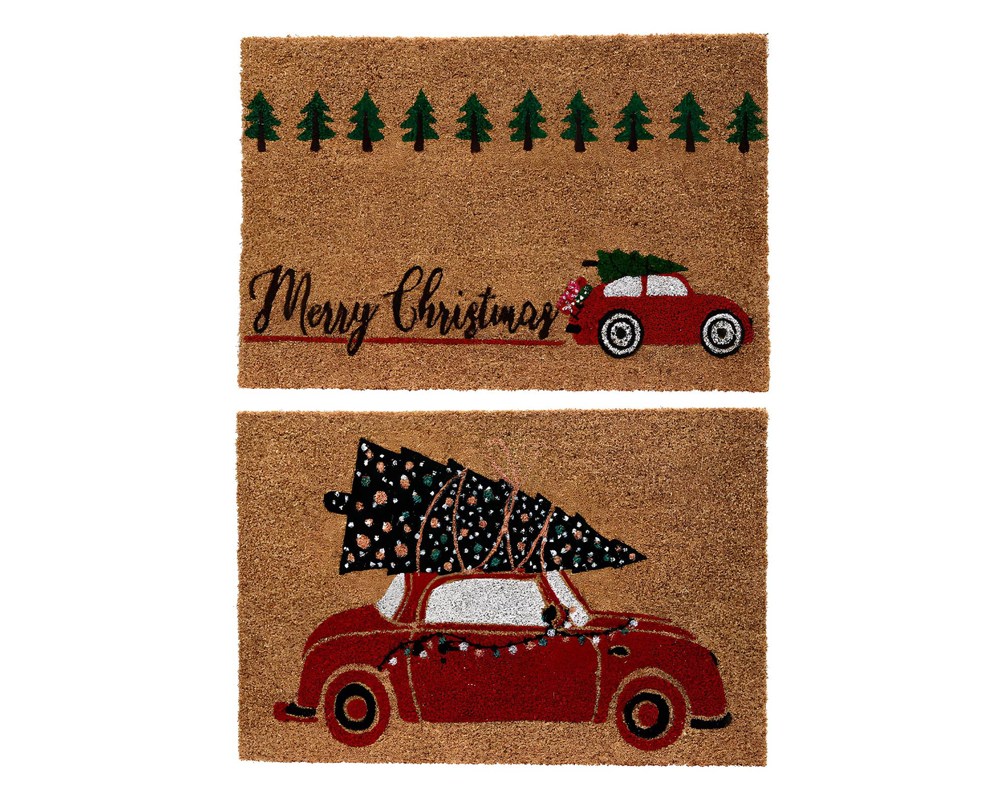 Zerbino Stampa Natalizia con Auto o Albero di Natale Assortito 60x40x1,5cm in Fibra di Cocco