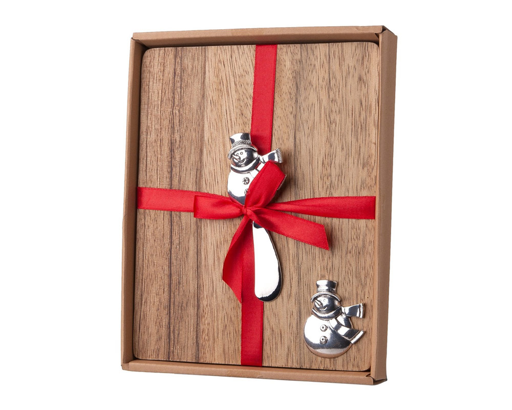 Set tagliere rettangolare acacia c/decorazione snowman metallo