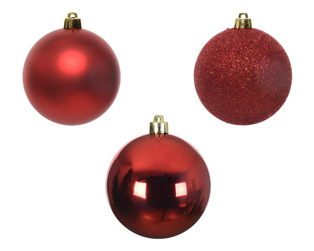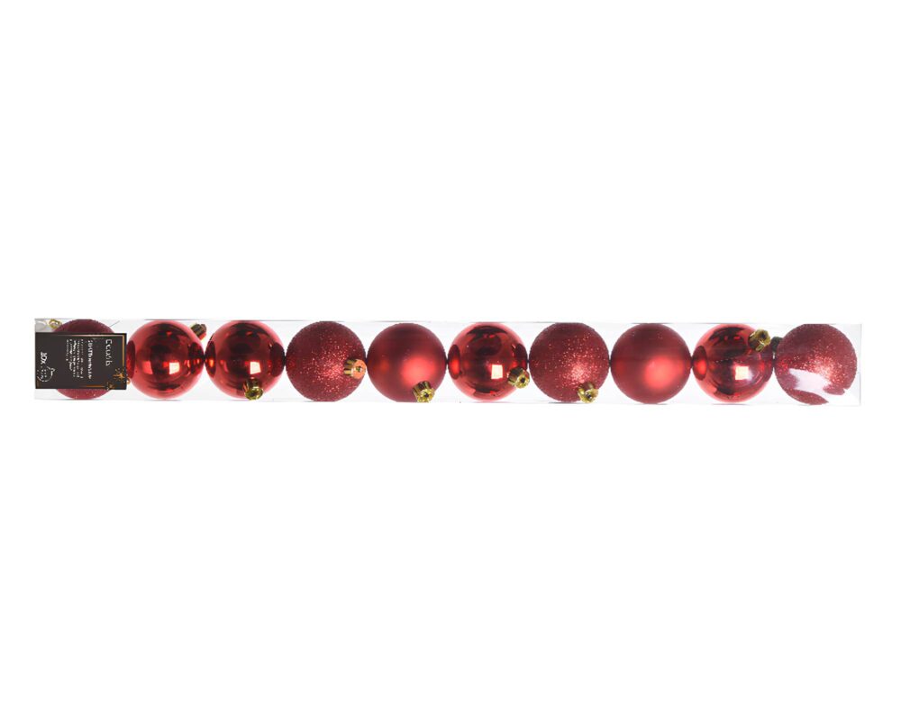 Set 10 Pz Sfere Lucide, Opache e Glitterate Rosso Assortito D6cm in Plastica