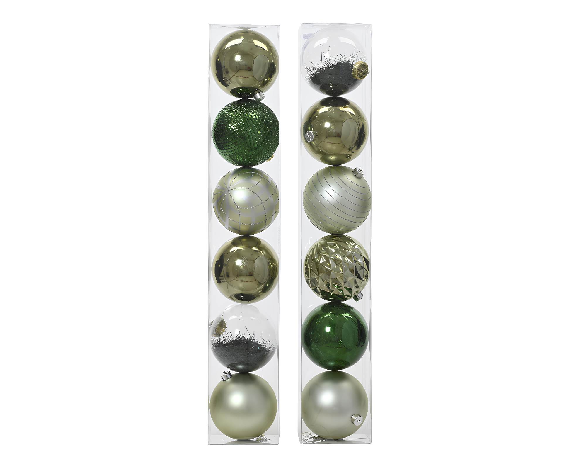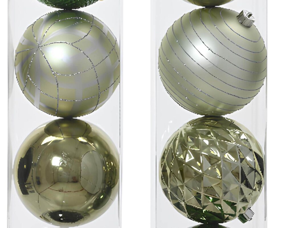 Set 6 Pz Sfere Verde Argentato Assortito D15cm in Vetro