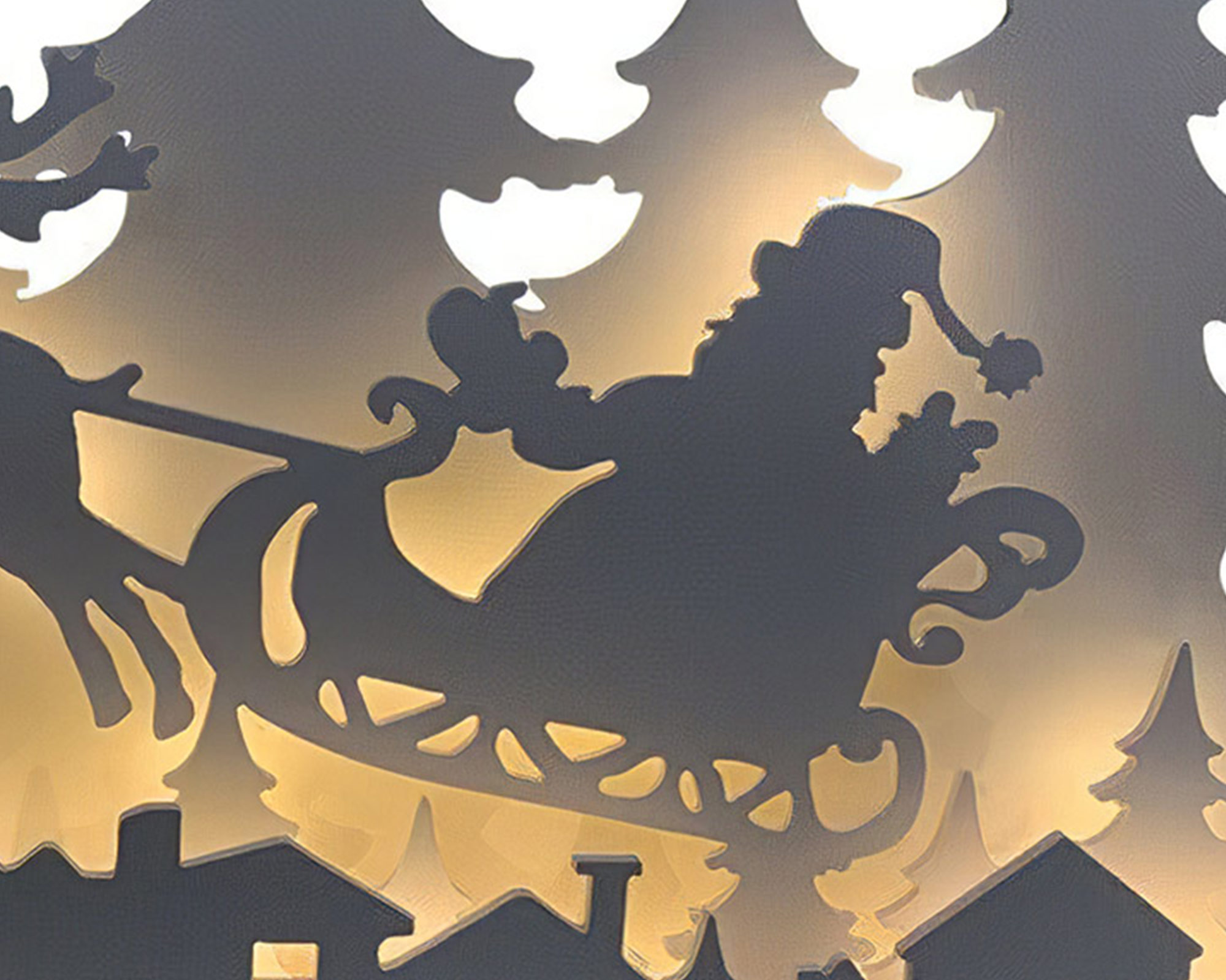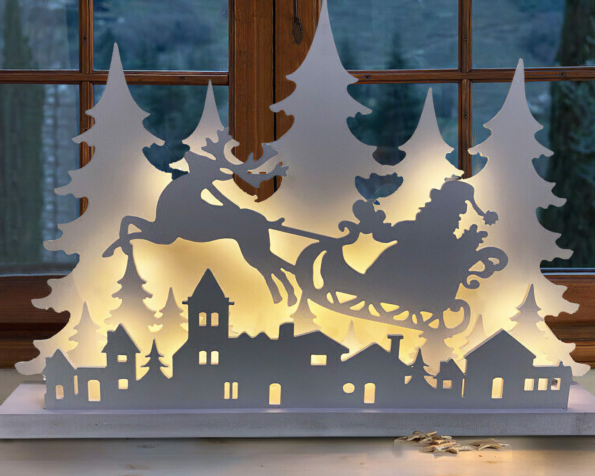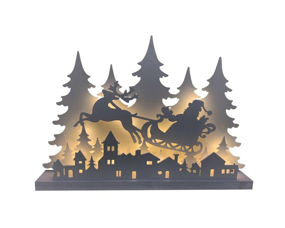 Sagoma in legno con Babbo natale sulla slitta e Led