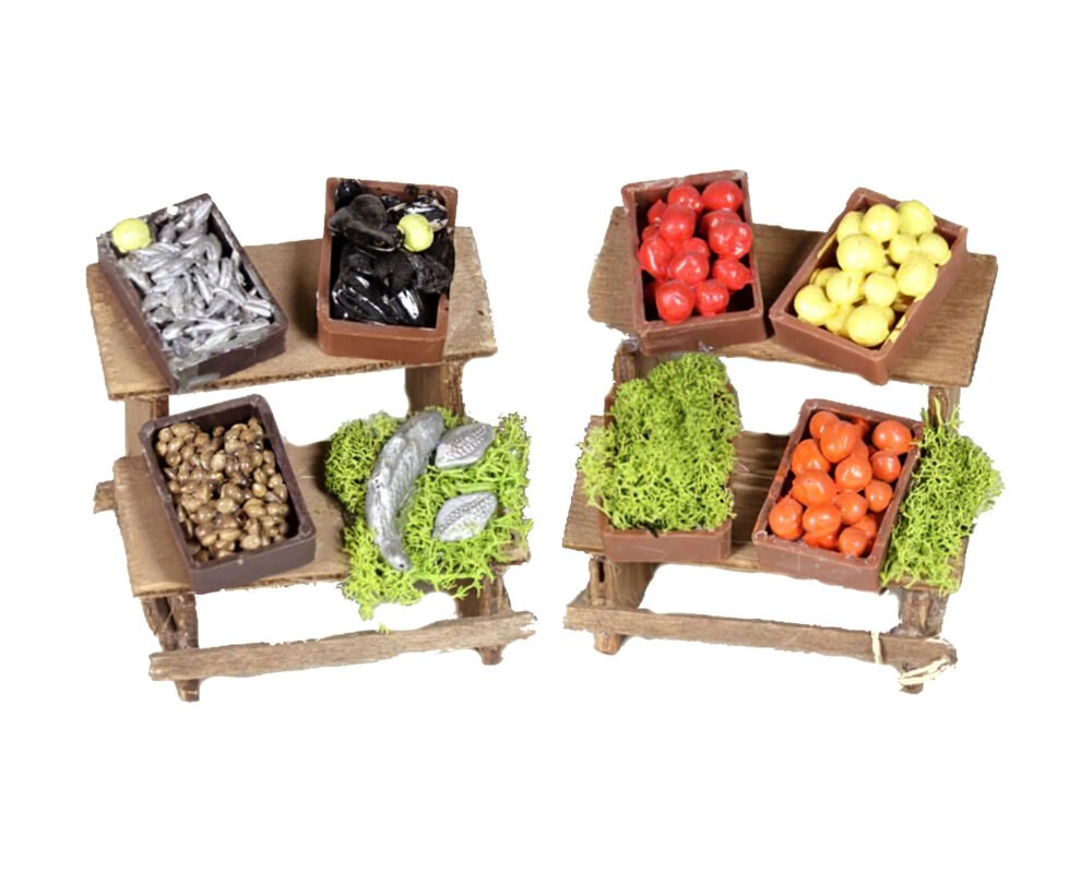 Banco Di Frutta E Verdura Realistica In Legno Per Presepe – Rossi Rosa