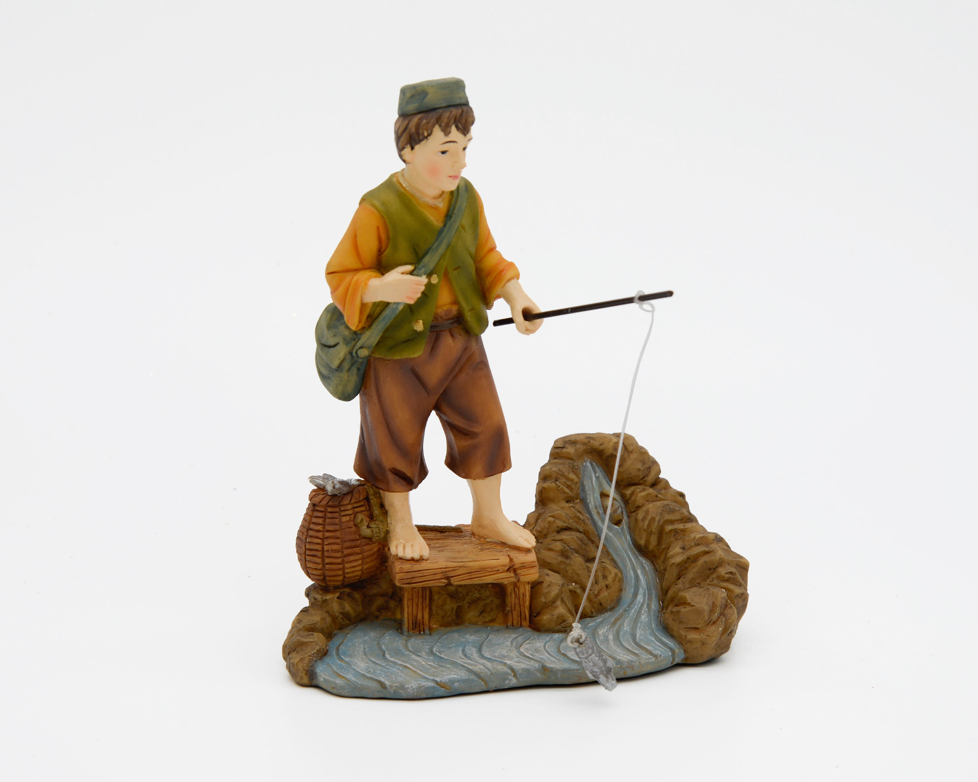 Statua di natività di un uomo che pesca. Questa bellissima statuetta è adatta per ingrandire e abbellire il vostro presepe