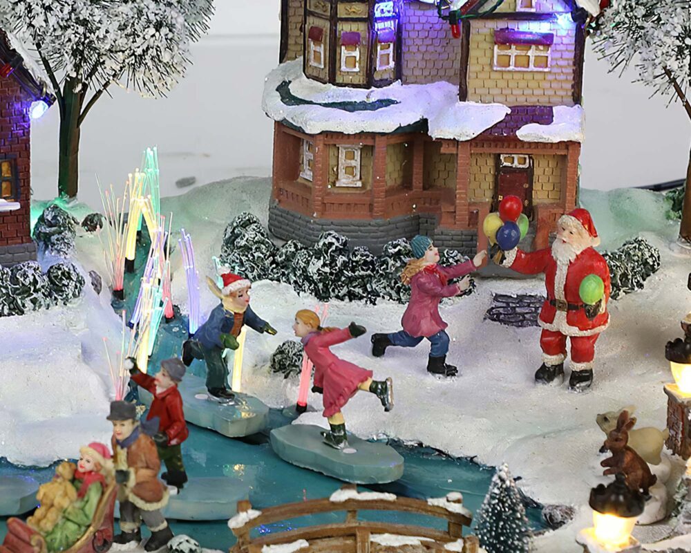 Il villaggio può riprodurre una serie di melodie natalizie accompagnato da dei giochi di luce.