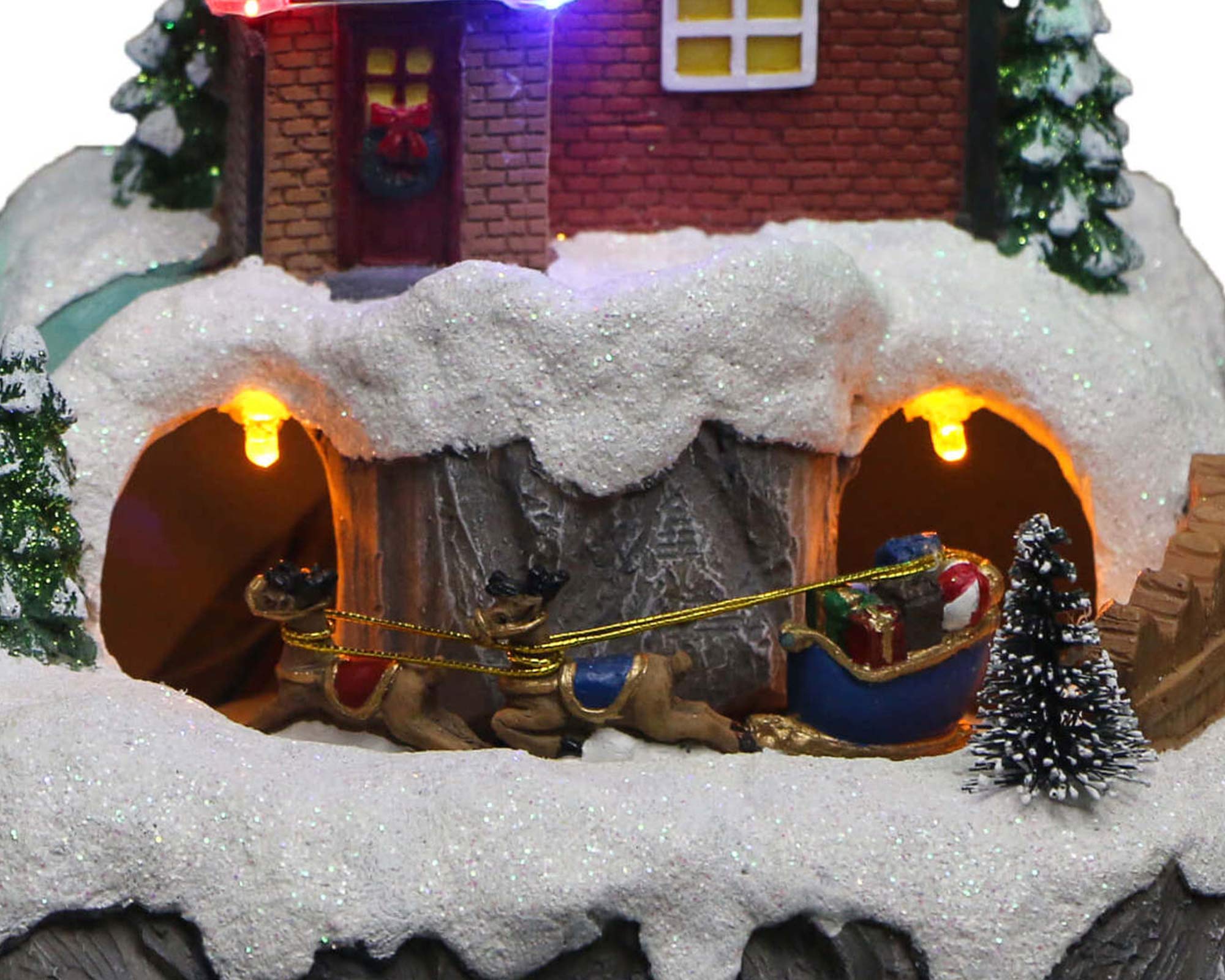 La slitta di Babbo natale può muoversi e riprodurre una serie di melodie natalizie accompagnato da dei giochi di luce.