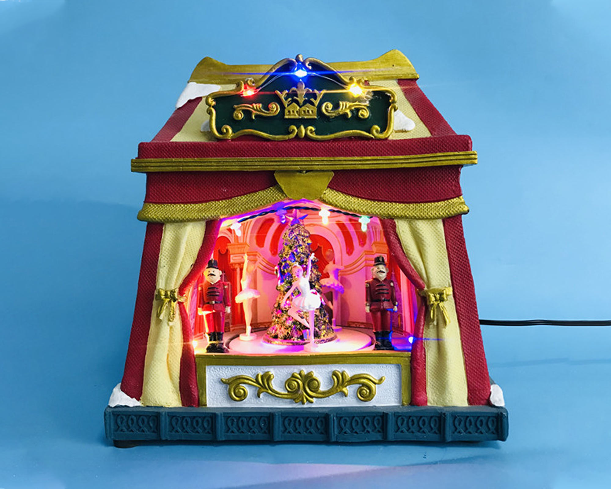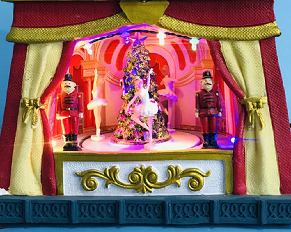 Villaggio nordico Teatro di danza in movimento con ballerina, schiaccianoci, musica e led