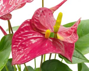 L’Andreanum è la specie più diffusa e che si trova più facilmente nella grande distribuzione. Cresce spontaneamente in Colombia e abitualmente non supera i 50 cm di altezza. Le foglie hanno forma di cuore, sono verde scuro lucido, molto grandi e decorative. Dalla primavera all’autunno produce delle spate coriacee e cerose. Il colore originariamente era rosso intenso, ma col tempo sono state create delle cultivar caratterizzate da nuovi colori delle infiorescenze: bianco, rosa, fucsia. Anche lo spatice ha trovato nuove colorazioni, spesso a contrasto, come il giallo. La caratteristica di questa pianta è la presenza della spata, una sorta di foglia rovesciata e di colore acceso, da cui spunta lo spadice, una spiga allungata con fiori ermafroditi. Si stima che siano presenti almeno 500 diverse specie di anthurium, distinte per colori e forme.