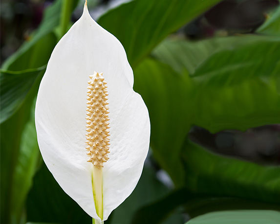 Lo spathiphyllum è una pianta da interno caratterizzata da lunghe foglie generalmente lanceolate. Se cresciuta nelle giuste condizioni produce delle foglie “modificate” di color bianco, dette spate. Possono sopportare condizioni di coltivazione poco idonee, quali le posizioni buie o ombreggiate, ma per ottenere piante rigogliose e fioriture abbondanti è necessario fornire almeno alcune ore al giorno di luce solare filtrata, evitando che i raggi solari colpiscano direttamente la pianta. Per tutto l’arco dell’anno annaffiare regolarmente, lasciando asciugare leggermente il terreno tra un’annaffiatura e l’altra. La fioritura di questa pianta è pressoché continua.