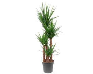 La yucca è una delle piante più diffuse come pianta d’appartamento e nei giardini, risalendo l’Italia fino alla Pianura Padana. Il genere Yucca appartiene alla famiglia delle Liliacee (Asparagacee) ed è originario delle Indie occidentali ma ben adattato in Italia. Comprende circa 40 specie di alberi e arbusti con altezze fino a 15 m nei luoghi d’origine, mentre alle nostre latitudini non superano i 2,5 m. Y. aloifolia raggiunge 1,5 m d’altezza ed è caratterizzata da foglie riunite in ciuffi portati alla sommità del fusto, che è robusto e legnoso. Le foglie sono coriacee e di colore verde intenso, appuntite e con i margini leggermente seghettati. Durante l’estate e in autunno produce tra le foglie le vistose e belle infiorescenze, formate da piccoli fiori di colore giallo-biancastro, spesso con screziature di colore rosso.