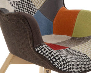 Questa comoda poltrona è stata realizzata con una tecnica di patchwork in poliestere. Il legno in pino con il quale è stato fabbricato si dimostra un vero tuttofare. Dato che il legno di pino è e di facile lavorazione, rende raffinate le sue possibilità come materia prima. Se il legno di pino viene cerato, mantiene il più possibile le sue proprietà di regolazione dell’umidità.
