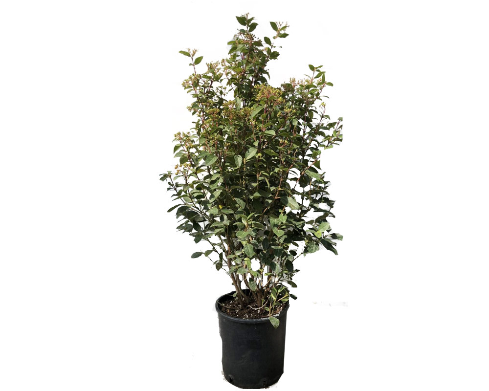 Arbusto cespuglioso sempreverde con grandi foglie coriacee più o meno ovali con apice appuntito di un bel verde scuro e lucido nella parte superiore e vagamente rossastro nella parte inferiore in corrispondenza delle nervature principali. E’ un arbusto rustico, molto resistente, a portamento compatto di facile accrescimento ed adattabilità, può superare l’altezza di 5 metri e oltre. Ad aprile-maggio produce dei piccoli fiori bianchi molto profumati raccolti in infiorescenze terminali ombrelliformi che durano circa 40 giorni. E’ impiegato come esemplare isolato, in gruppi e per siepi, ideale per creare schermi o ripari grazie al fitto fogliame.