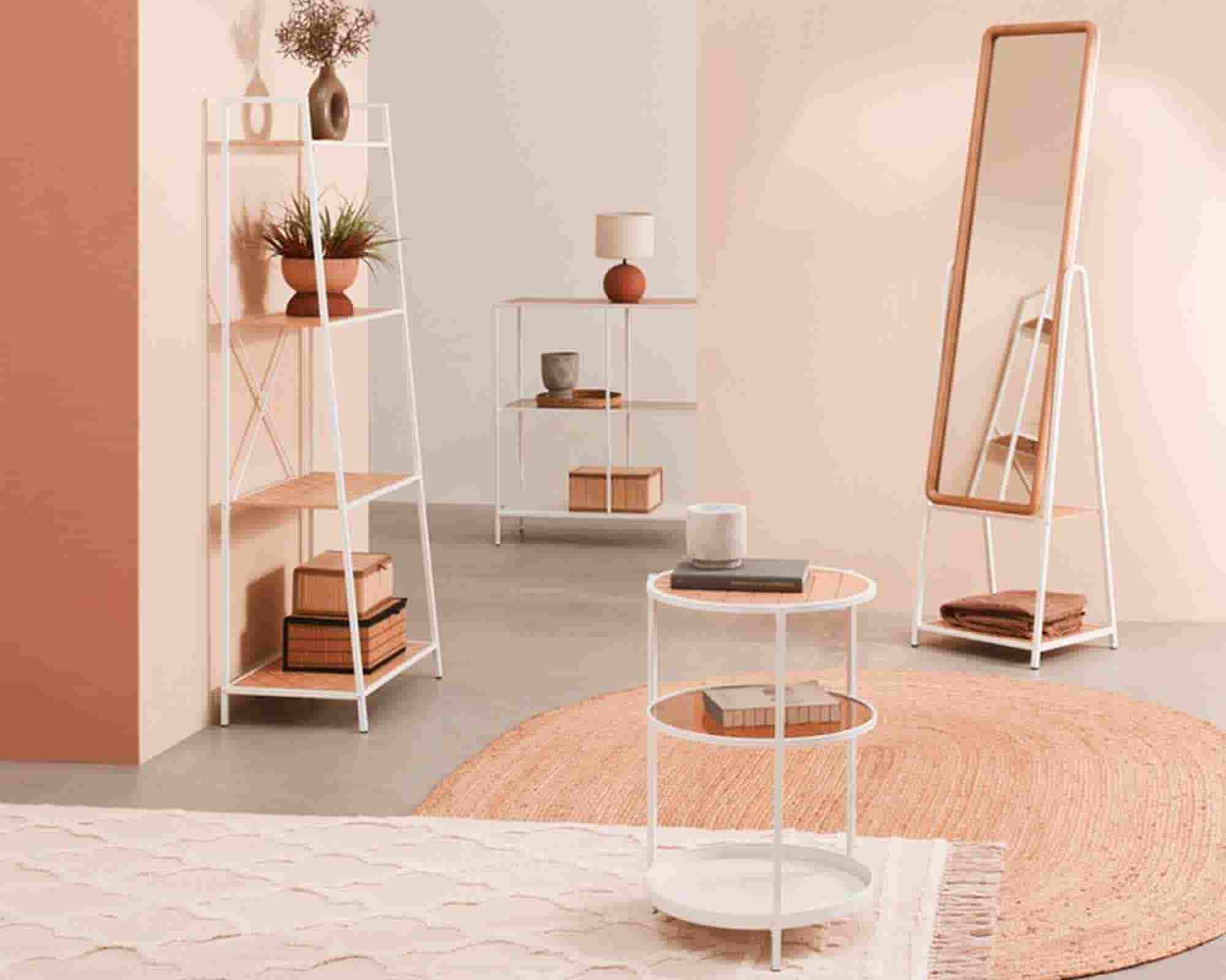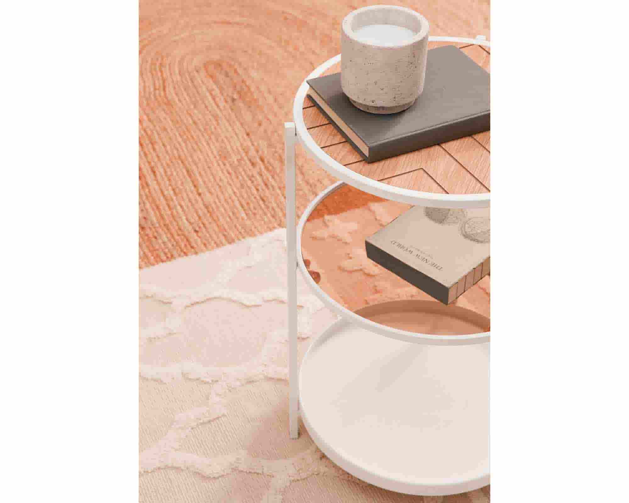 Tavolino 3 Piani Haldor Bianco e Naturale 40×60,5cm in Legno di Gomma e Acciaio – Bizzotto