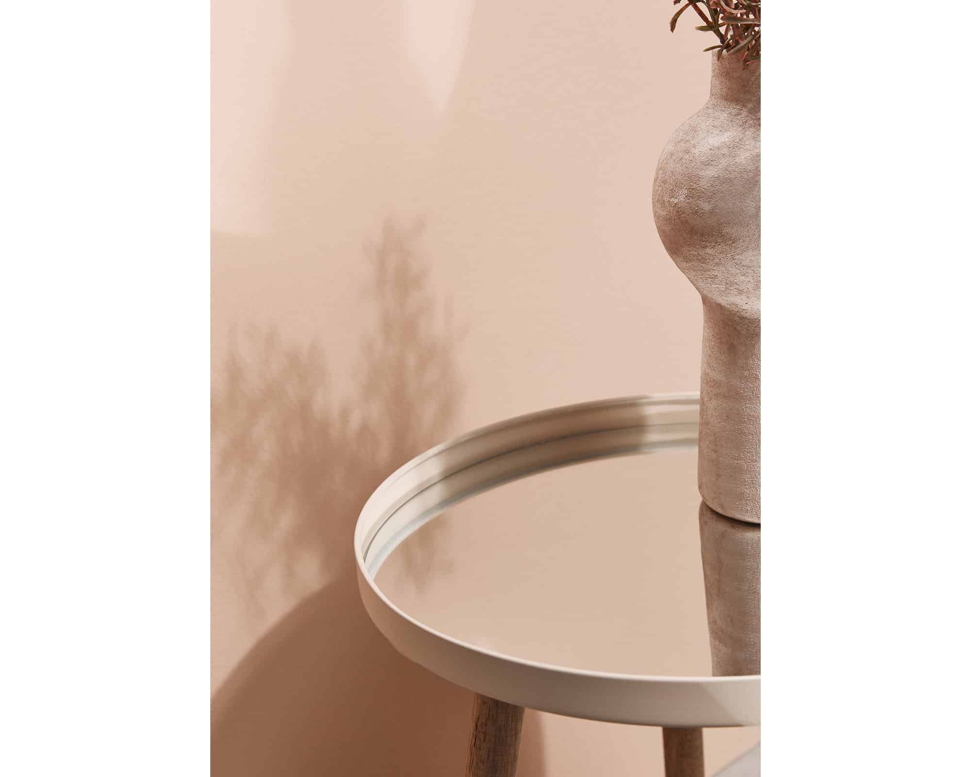 Tavolino Tondo S Edvard Avorio Acciaio e Vetro – Bizzotto