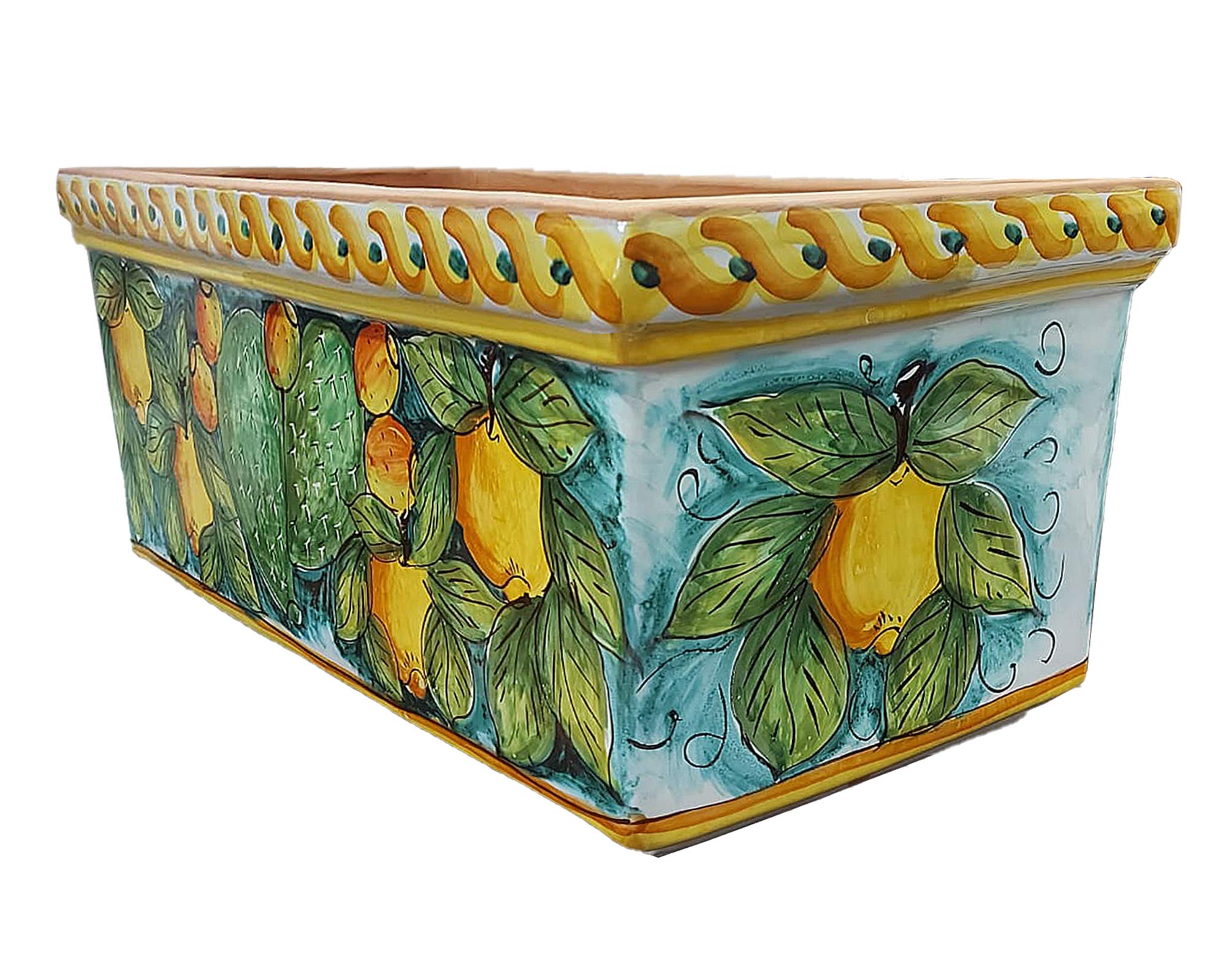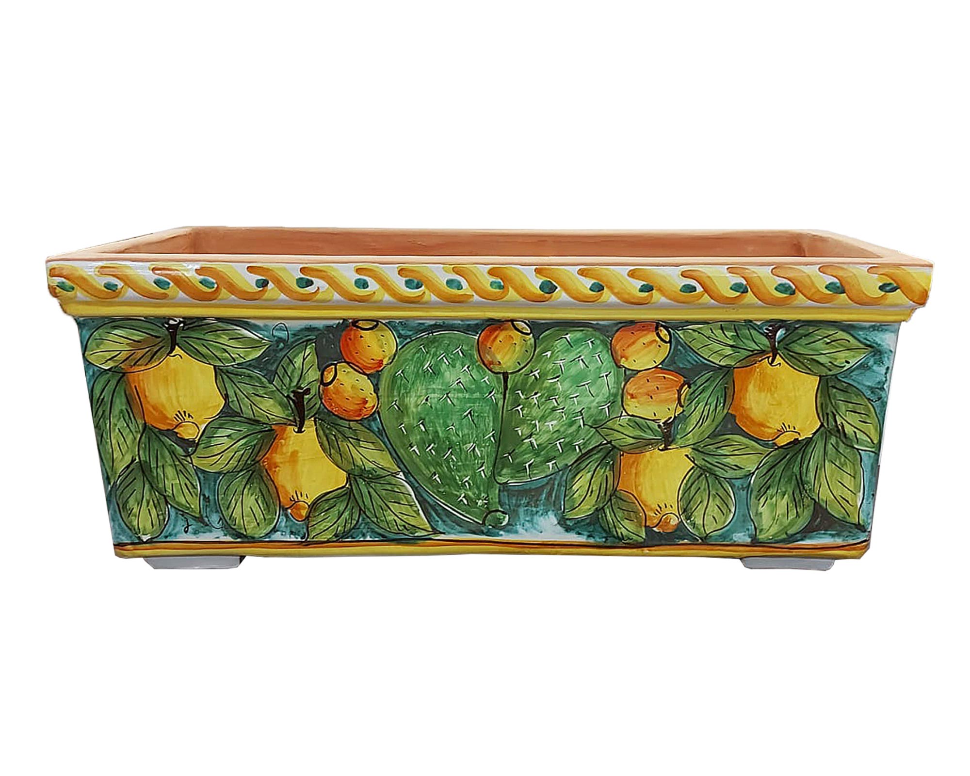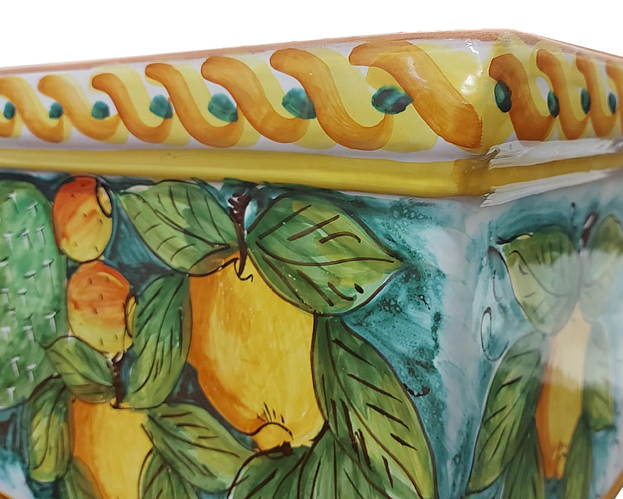 Cachepot Fioriera con Decoro Limoni e Fichi 60h in Terracotta