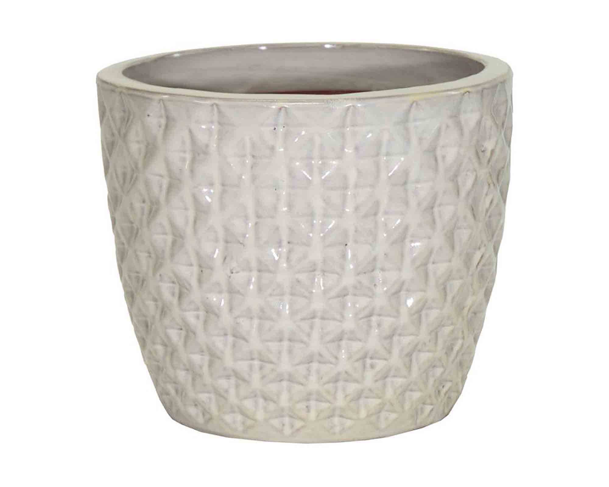 Cachepot Scanalato Quadrettato Smaltato Bianco D18x16cm in Ceramica