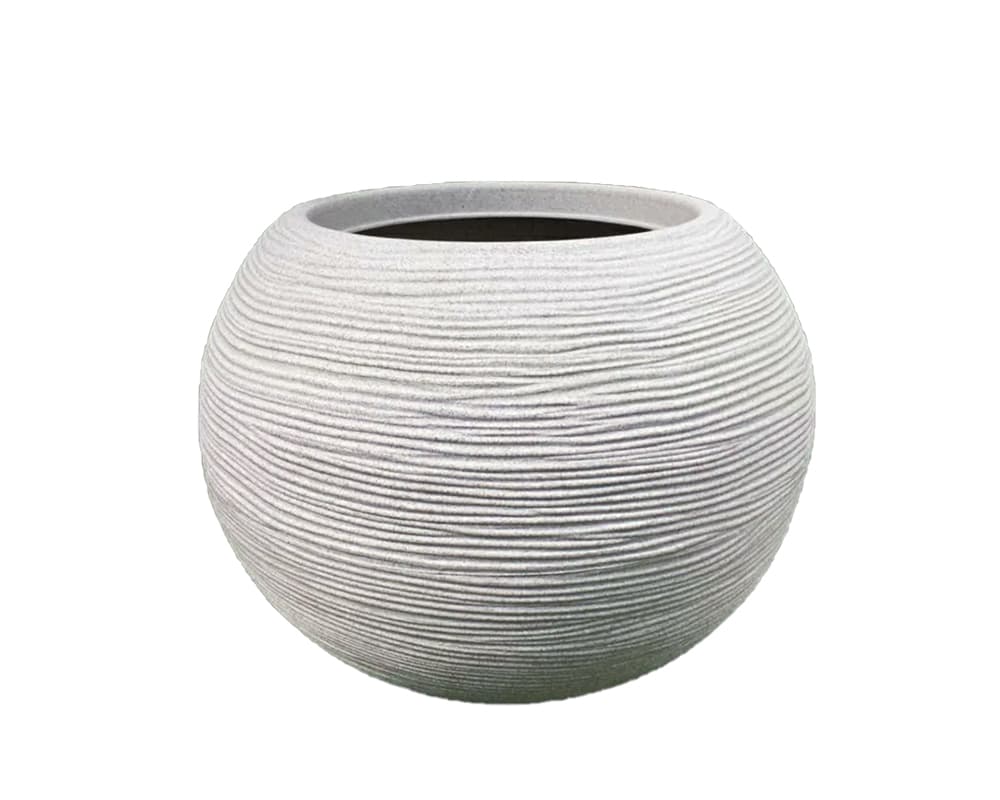 Vaso Sfera Rigata Shabby Bianco Perla D40cm in Resina