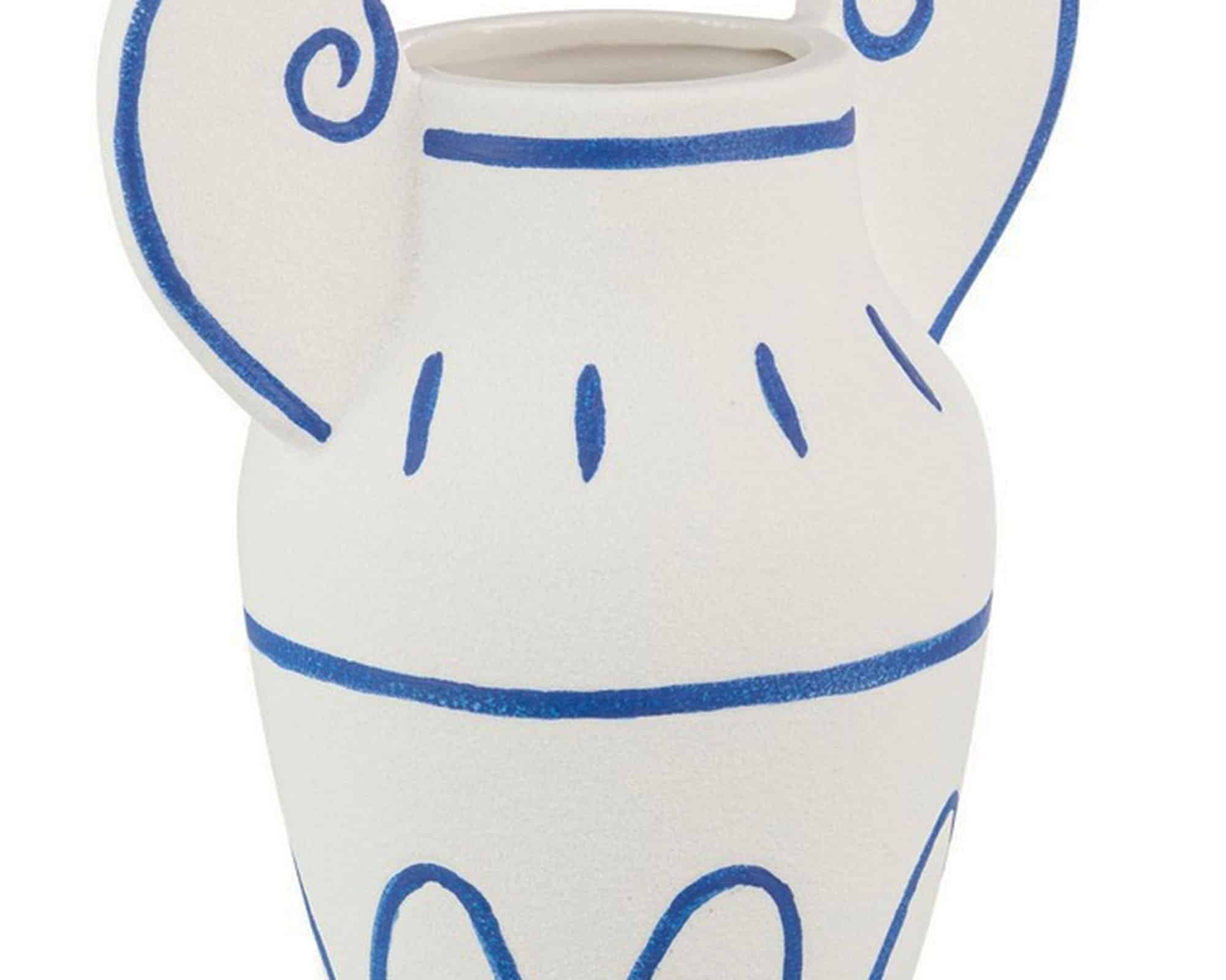 Vaso Anfora Greek Bianco e Blu 16×10,5x20cm in Ceramica – Bizzotto