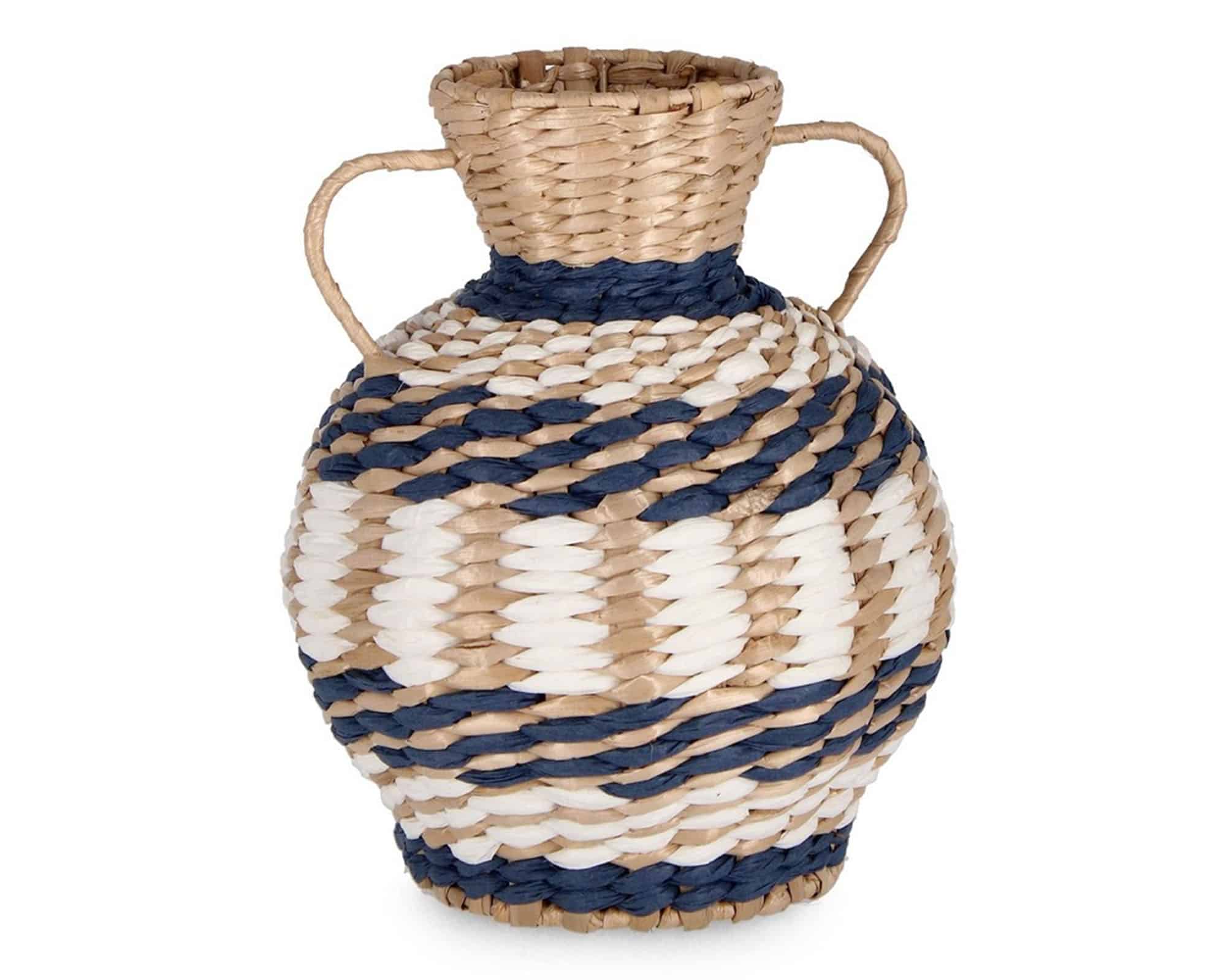Vaso Anfora Namibia Blu e Bianco D22cm in Rattan – Bizzotto