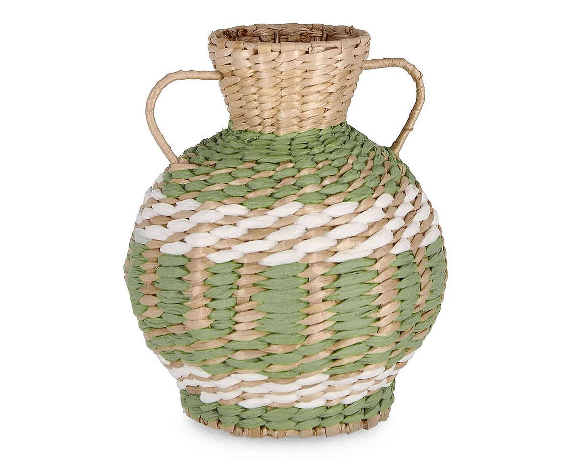 Vaso Anfora Namibia Verde e Bianco D22cm in Rattan – Bizzotto