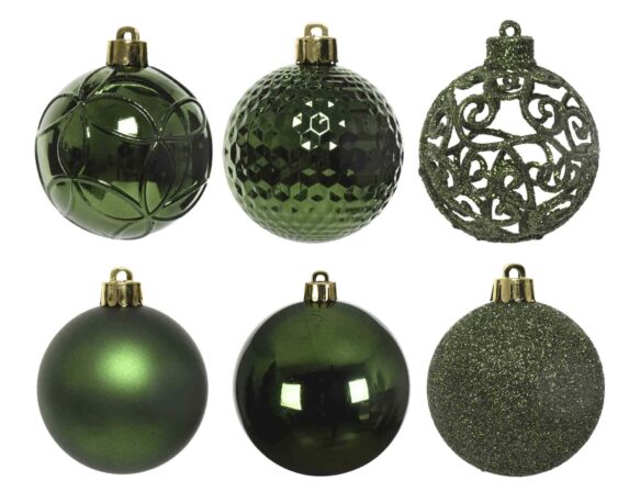 Set 37 Pz Sfere Verde Pino Assortito D6cm in Vetro