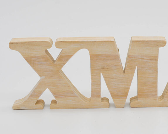 Sagoma con scritta XMAS in legno naturale
