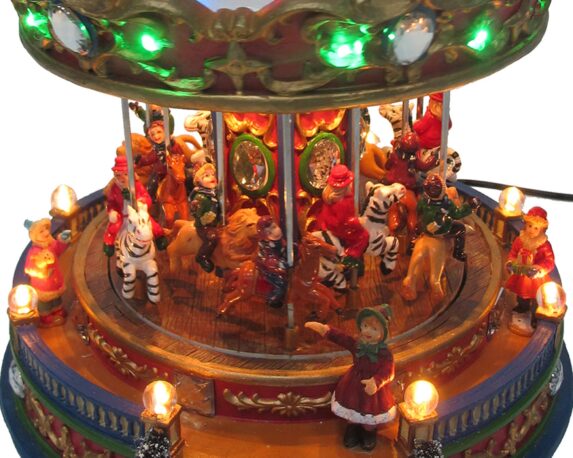 Villaggio nordico Carosello in movimento con bambini, musica e led