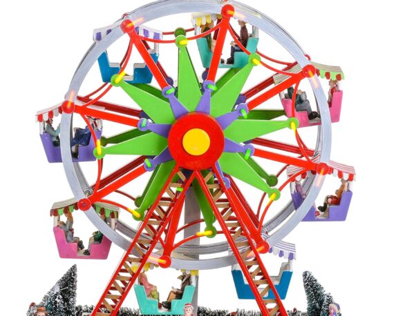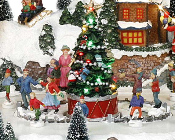 Villaggio di Natale Ruota panoramica e pattinatori in movimento con musica e led