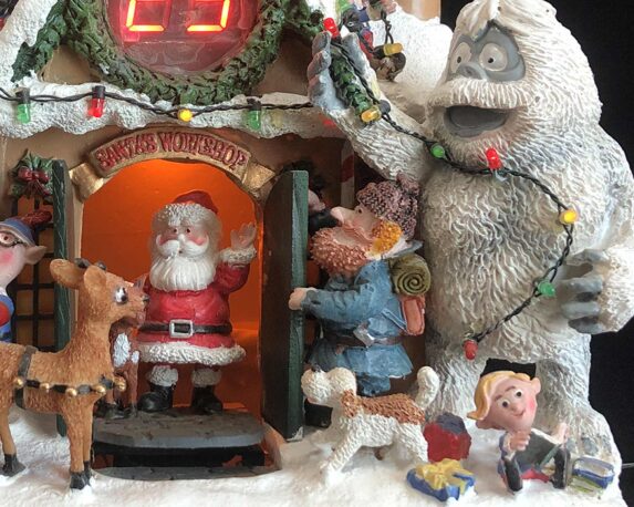 Villaggio natalizio innevato in movimento con Albero di Natale e led