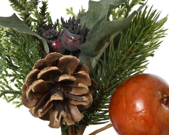 Decorazione Ramo con Pigna e Mela Verde e Rosso 10x13x15cm