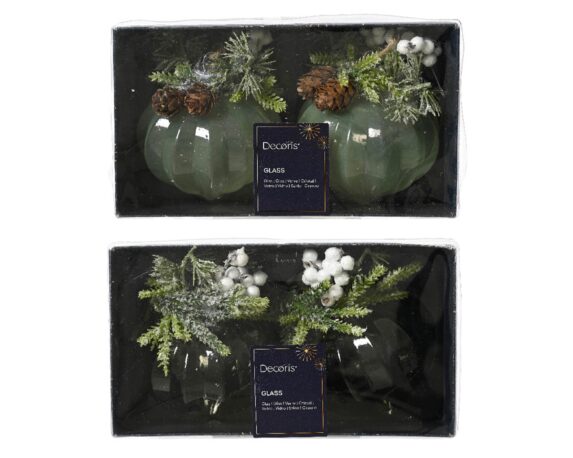 Box 2 Pigna Ornamento Bianco Menta Verde Rosmarino D8cm in Vetro