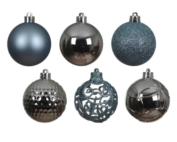 Set 37 Pz Sfere Blu Ghiaccio Assortito D6cm in Vetro