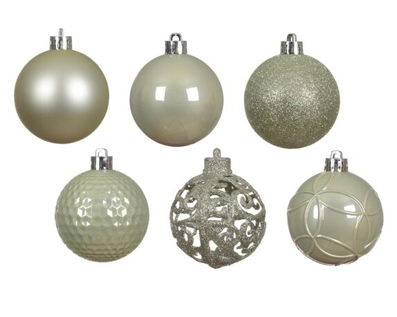 Set 37 Pz Sfere Menta Bianca Assortito D6cm in Vetro