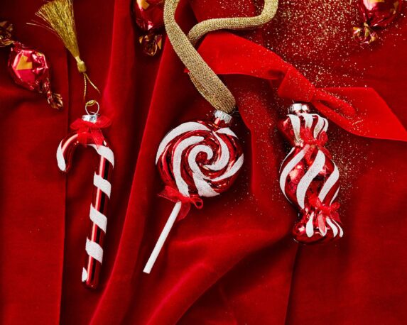 Pendente Lecca Lecca Bastoncini di Zucchero Mix Rosso 4,5×3,5x13cm in Vetro