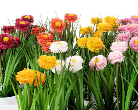 Tagete Fiore Artificiale con Cachepot in PVC