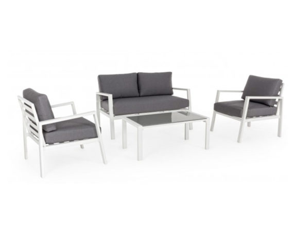 Set 4 Pz Salotto Harley Bianco con Cuscini in Alluminio, Polipropilene e Textiline – Bizzotto