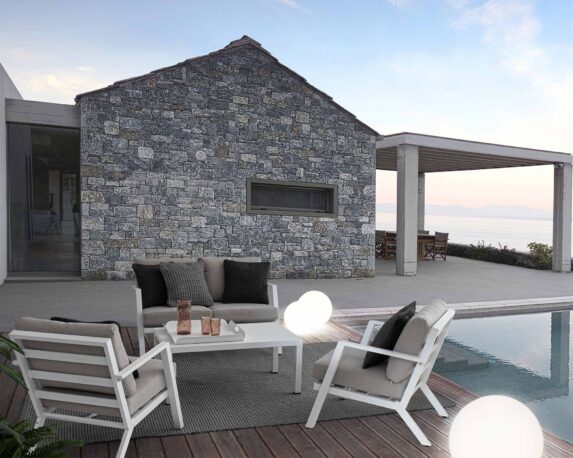 Set 4 Pz Salotto Atlantic con Cuscini Bianco e Tortora in Alluminio e Poliestere