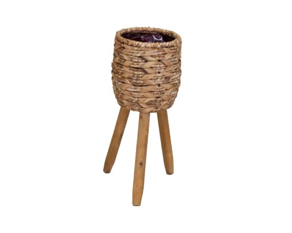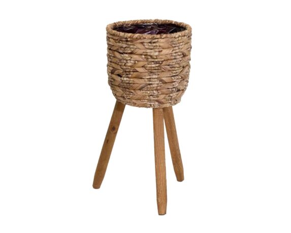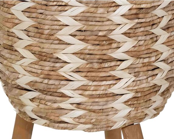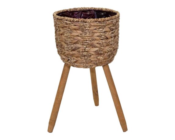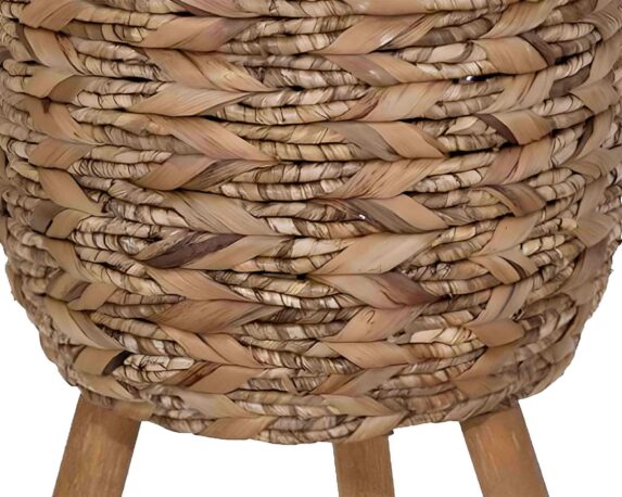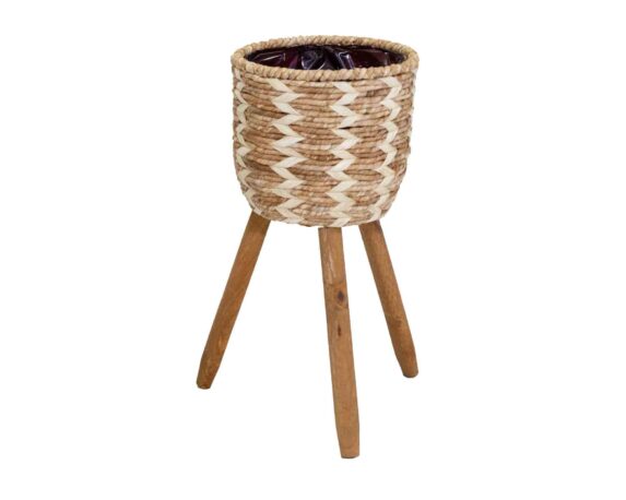 Cachepot Zigzag con Piedi Marrone Naturale D24x52cm in Rattan e Legno